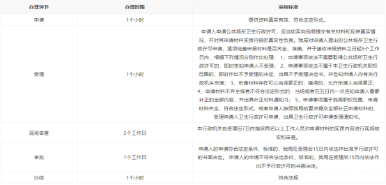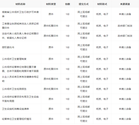 1. 经营场所选址、设计、设备布局、卫生设施、空调系统、给排水系统必须符合《公共场所卫生管理条例》及《公共场所卫生管理条例实施细则》、《公共场所集中空调通风系统卫生管理办法》卫生法律、法规、规章、卫生标准和卫生规范的要求;具备经营过程中控制污染的条件和措施。 2.具备卫生管理制度、专(兼)职卫生管理人员。 3.从业人员必须持有有效健康合格证明。 4.具备符合卫生要求的用品用具、洗消设备、保管用柜等;所使用的消毒药械必须有卫生许可批件。 5.各类场所内必须有排风系统,凡设有空调装置的场所必须有新风供给,且组织通风合理。新风入口应设在室外,远离污染源。各卫生间或吸烟区设独立排风系统。 6.生产经营场地合法使用证明(房屋产权证明或租赁合同)。 7.有资质的卫生技术服务机构出具的集中空调通风系统的预防空气传播性疾病的卫生学评价。 8.消防合格证明。