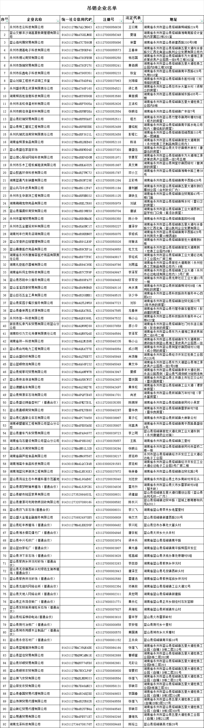 关于吊销永州市志云科技有限公司等92户企业营业执照行政处罚决定公告
