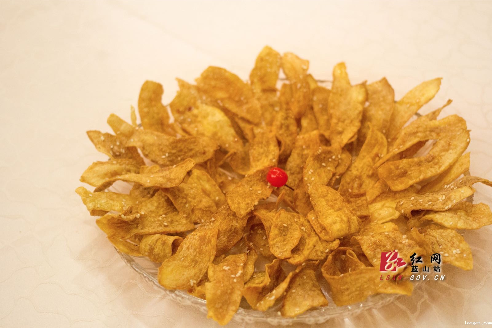 菜肴故事:嘉庆年间,华体会登陆网站盛产红薯,人们多以红薯为主食。家住所城镇的农户铁柱的小儿子得了一种“怪病”,吃不下红薯,一吃红薯就吐。这下铁柱就犯了难,家里只有红薯可以填饱肚子。铁柱的媳妇是个心灵手巧的人,她小时候跟着外婆长大,外婆是当地著名的点心师傅,于是她想着能否用红薯为材料做一道简单可口的点心。于是便把红薯切片用油炸至金黄,给小儿子送去的时候没告诉他是红薯做成的,小儿子见金黄色的红薯片很有食欲,吃下之后也并没有吐。渐渐地,小儿子的“怪病”好了。从那以后,红薯片也成了蓝山人们逢年过节的一道必备小吃。