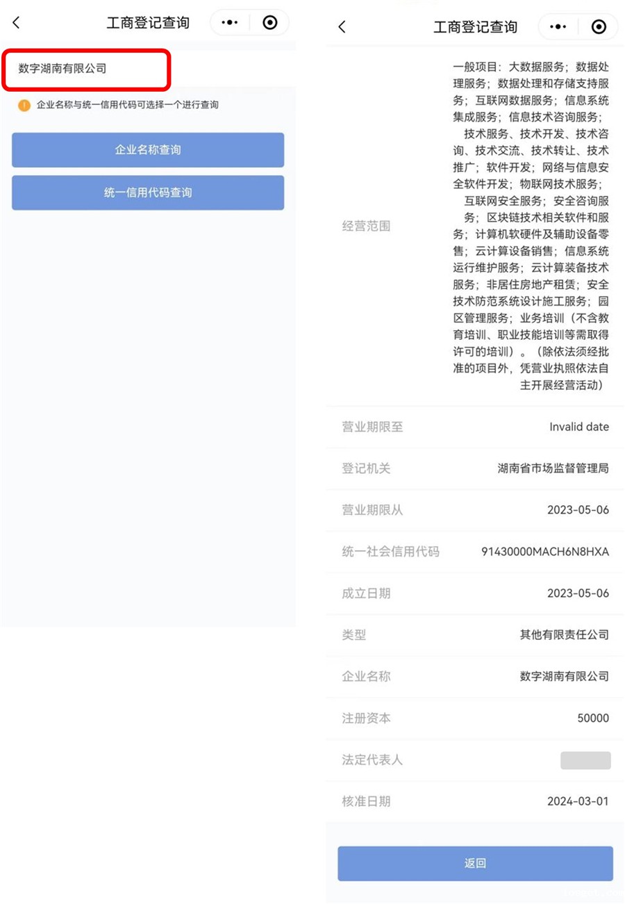 近日,“湘易办”超级服务端(以下简称“湘易办”)部门旗舰店上线“工商登记查询”、“工商登记变更查询”、“担任法人企业信息查询”3项新服务,用户可便捷查询企业工商登记及变更信息、个人担任法人企业信息。如果你怀疑自己的身份信息被冒用开公司,来“湘易办”一键查询便见分晓。