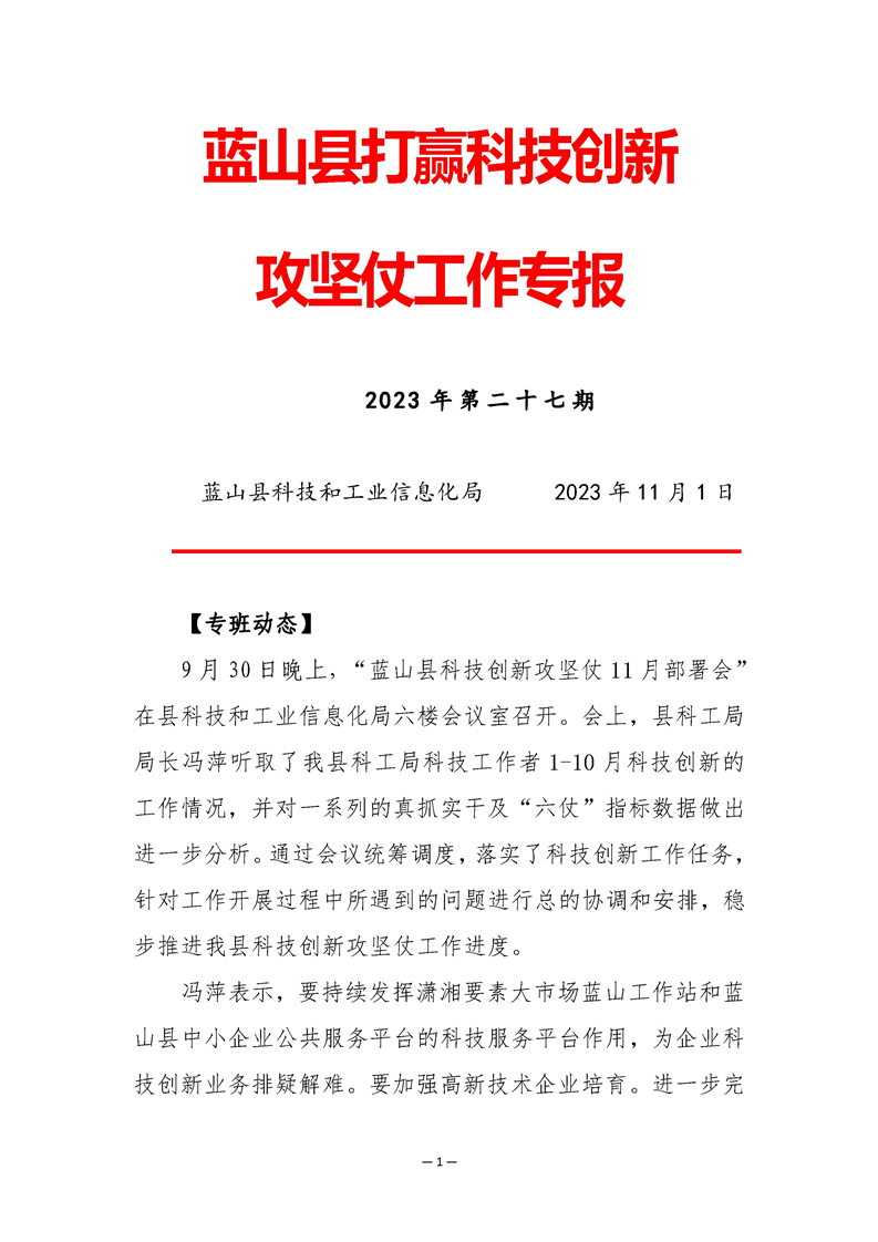 华体会登陆网站打赢科技创新坚仗工作专报(第27期)