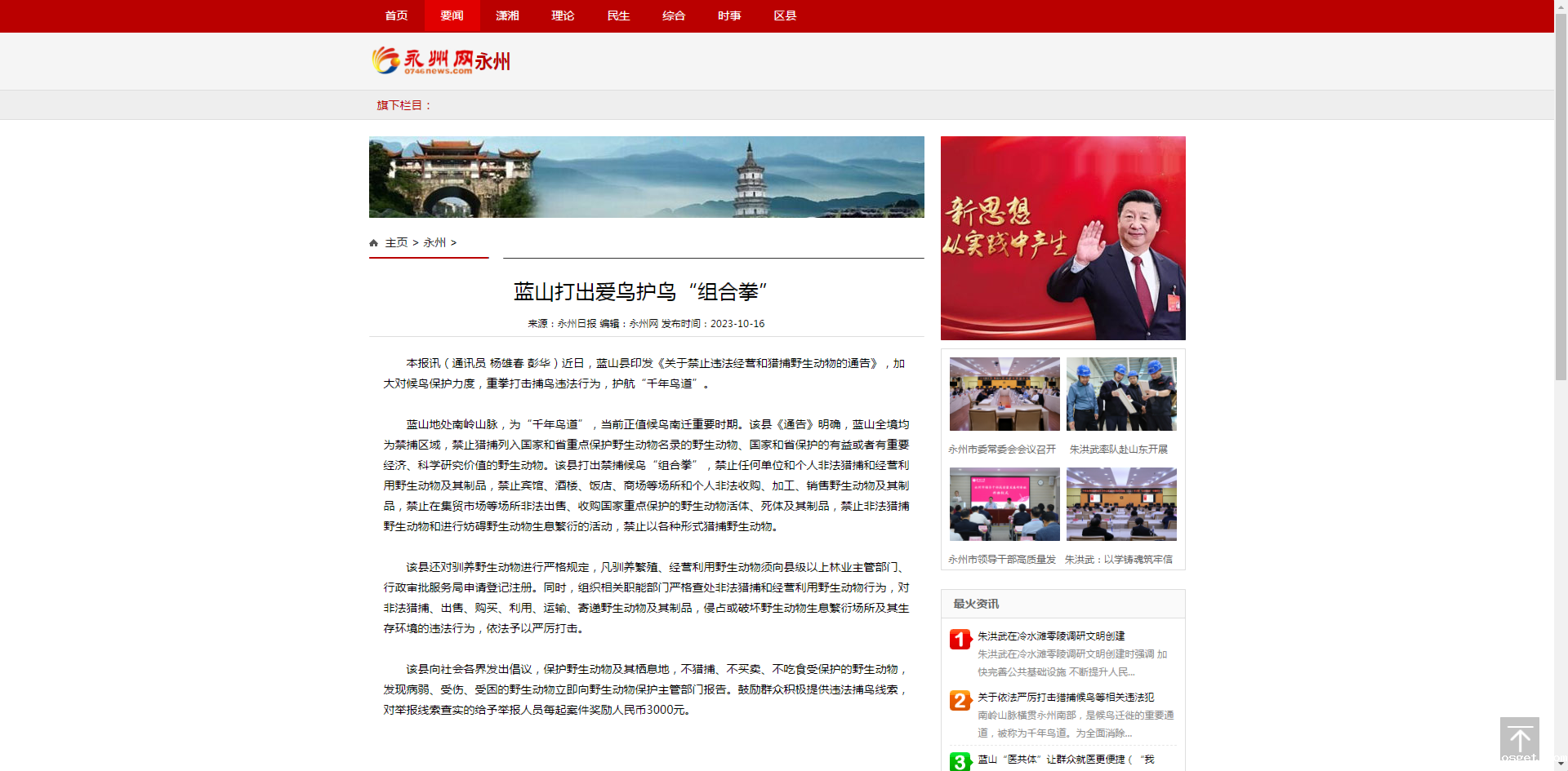 永州日报讯(通讯员 杨雄春 彭华)近日,华体会登陆网站印发《关于禁止违法经营和猎捕野生动物的通告》,加大对候鸟保护力度,重拳打击捕鸟违法行为,护航“千年鸟道”。