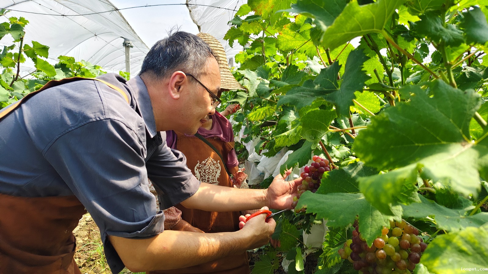 据彭申介绍,基地今年种植了60多亩葡萄,以玫瑰香和金香品种为主,预计产量可达4万多斤。