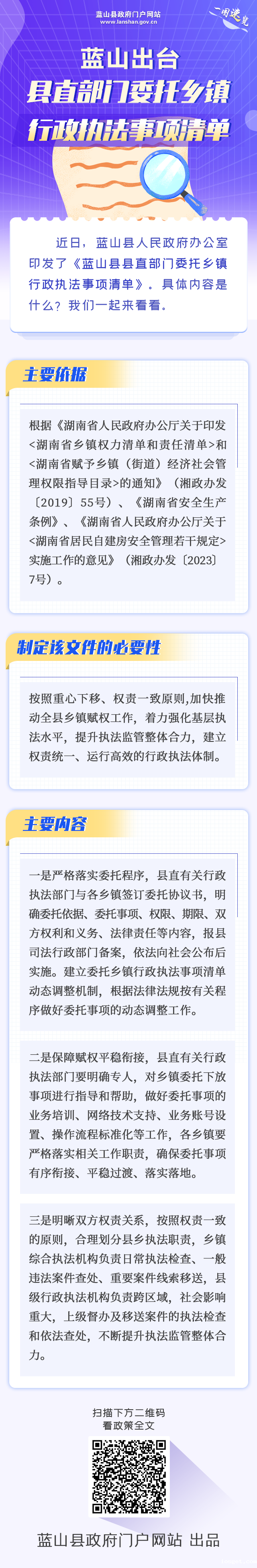 政策图解|蓝山出台县直部门委托乡镇行政执法事项清单