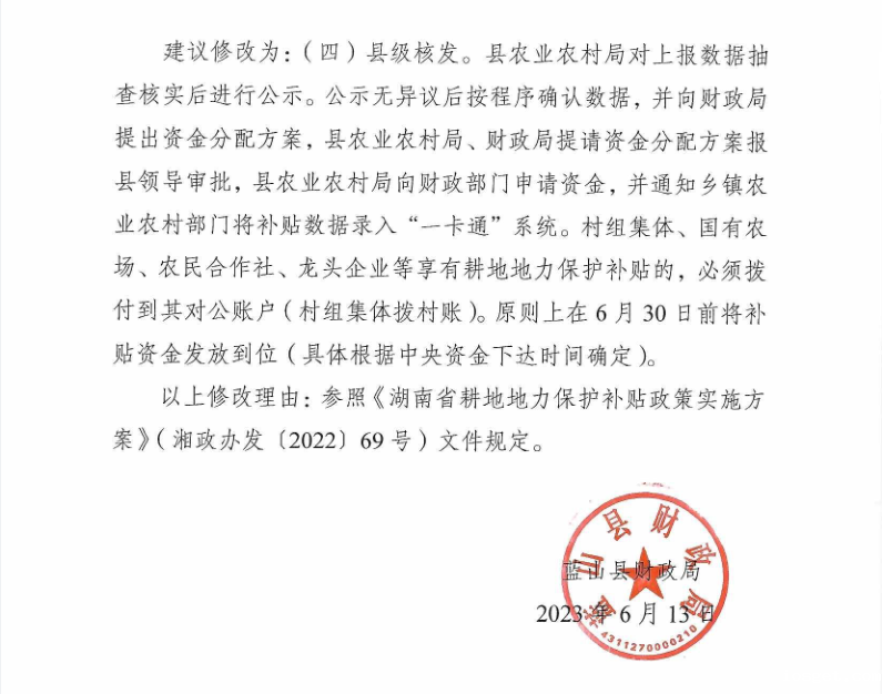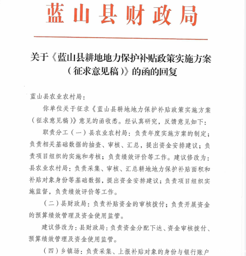 关于《华体会登陆网站耕地地力保护补贴政策实施方案(草案)》的结果反馈