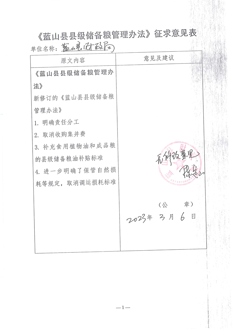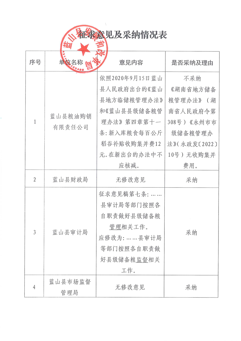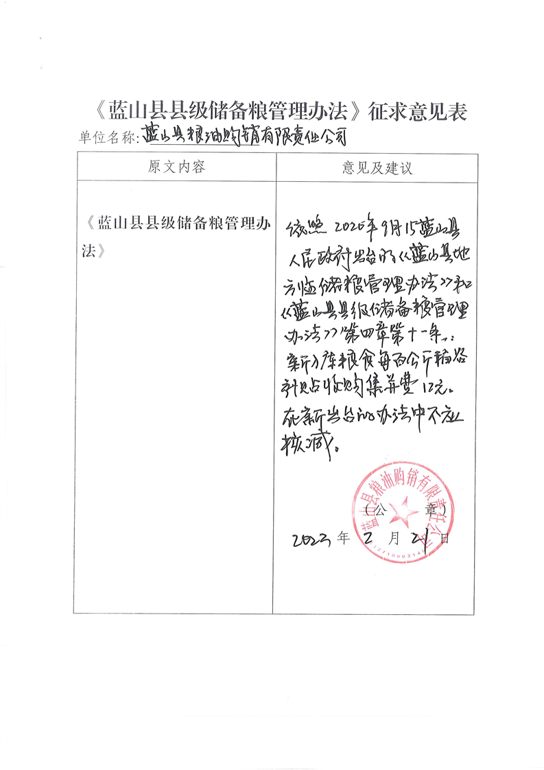 关于《华体会登陆网站县级储备粮管理办法》意见征集结果反馈
