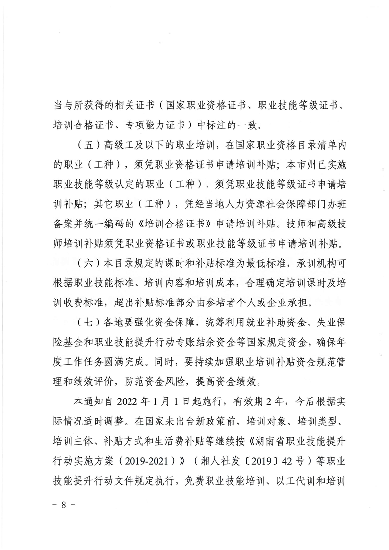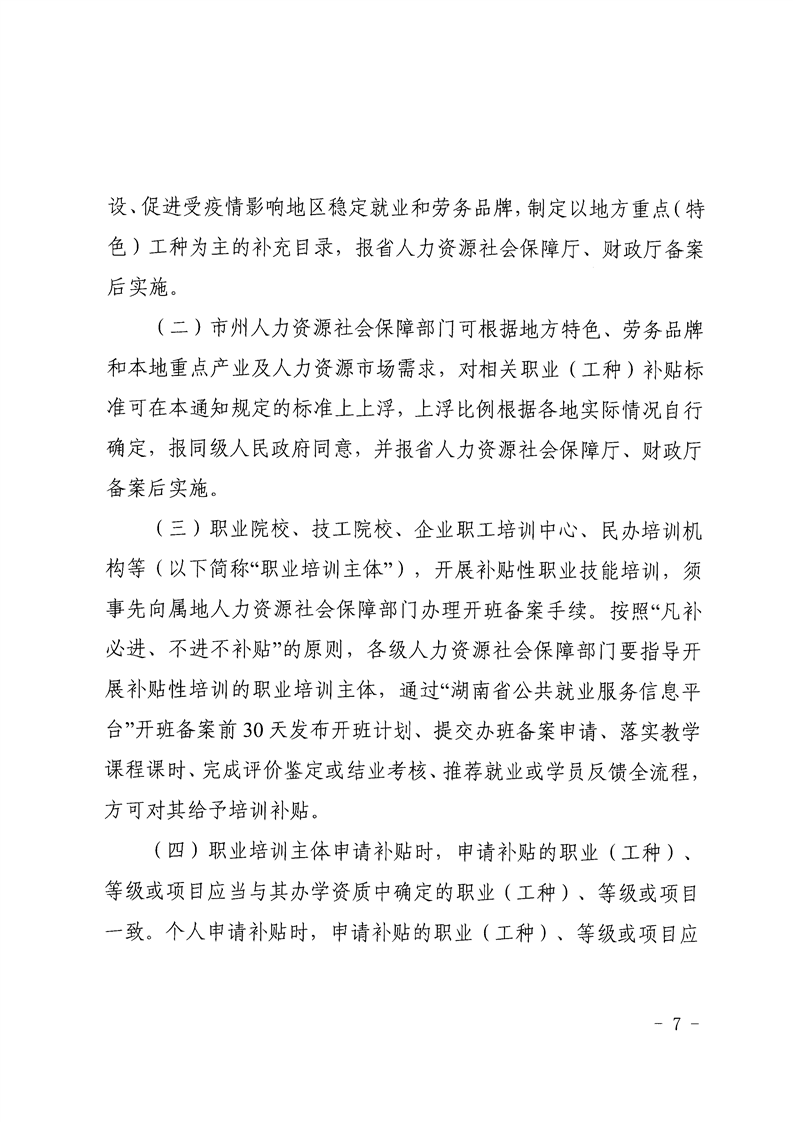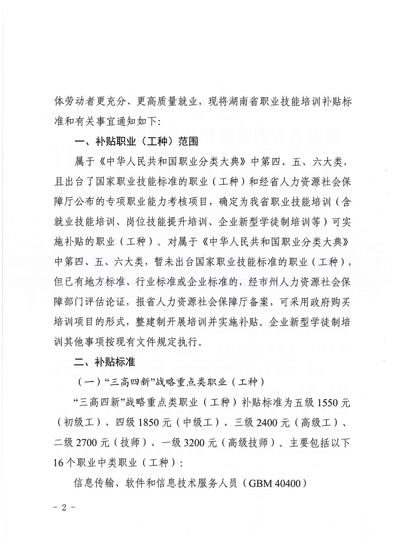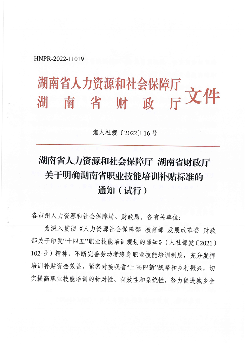 湖南省人力资源和社会保障厅 湖南省财政厅关于明确湖南省职业技能培训补贴标准的通知(试行)