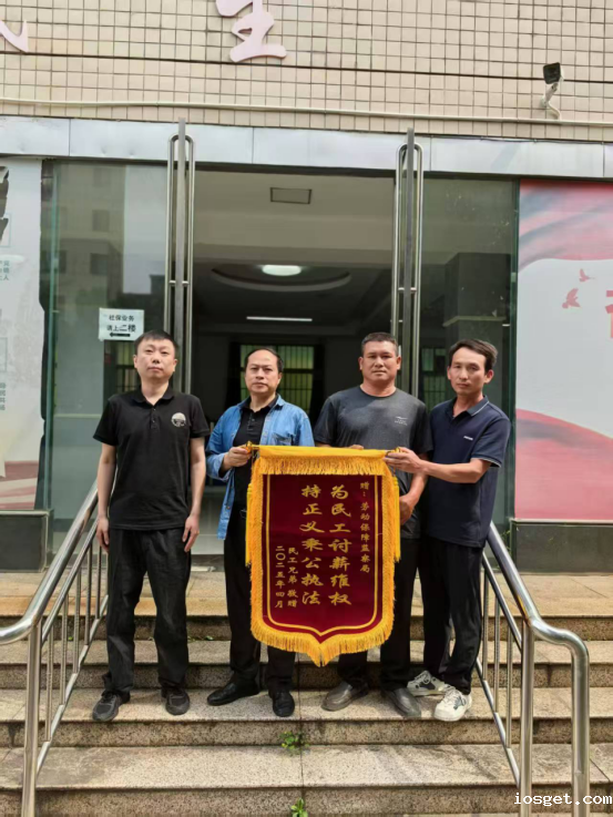 2025年4月30日上午,农民工马某、唐某来到华体会登陆网站人力资源和社会保障局(以下简称县人社局),为该局送上绣有“为民工讨薪维权 持正义秉公执法”的锦旗,感谢工作人员帮助他们拿到了拖欠近半年的工资。