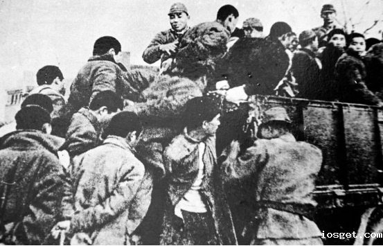 日军将大批南京青壮年捆绑后,押往郊外集体屠杀。